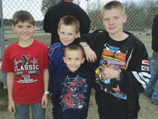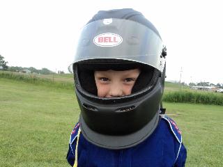 AJ pumps his fists in victory lane at Bi-State Speedway.