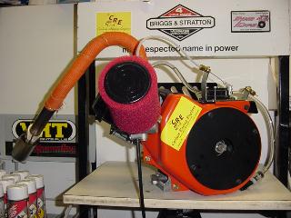 CRE custom billet alum filter adapter, fabric filter, foam pre filter, throttle kit, 2 piece motor mount, chain guard, Blueprinted Horstman Reaper clutch, and CRE exhaust pipe tuned to the engine.
