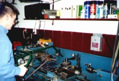 You can count on precision tolerances being met when your block is machined at CRE. Here, Brian finish hones a cylinder properly, using a torque plate.