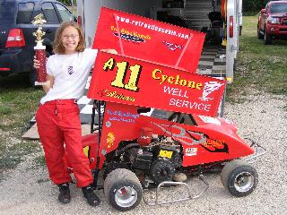 Megan Wade Enjoying VICTORY at US24 Speedway with a Vector DO powered by a Carlson Racing Engines.
