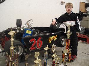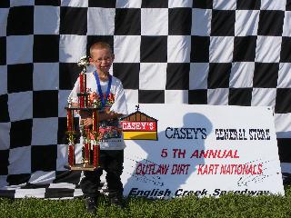Kinser Colgin, winner of the 2009 AND 2010 Outlaw Dirt Kart Nationals, English Creek Speedway, Knoxville, IA. Kinseris a multi-feature winner throughout the midwest using Carlson Racing Engines, Vector Chassis, and Vector Cut tires!