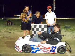 TJ Barrett wins the 2010 Firecracker 500 at LVMS, LakeVillage, IN using Carlson Racing Engines power, and Vector Cut Tires & Preps.